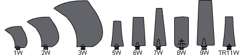| 7W | - | 63 | 72 | 81 | 89 | 96 | 103 | 109 | |